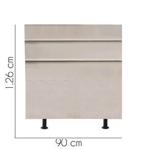 - Largura: 90 cm; - Altura: 126 cm; - Profundidade: 11 cm; - Produto estofado; - Produzido em Madeira de Pinus e Eucalipto; - Pés em pvc;