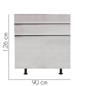 - Largura: 90 cm; - Altura: 126 cm; - Profundidade: 11 cm; - Produto estofado; - Produzido em Madeira de Pinus e Eucalipto; - Pés em pvc;
