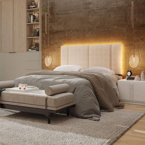 Cabeceira Casal Estofada com Iluminação LED ? Ideal para quem busca conforto e modernidade!