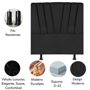 Cabeceira Estofada Cama Box King 195 cm Louise Veludo - Preto