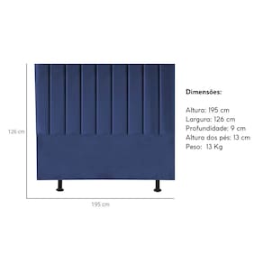 Cabeceira Estofada Cama Box King 195 cm Marina Veludo - Azul Marinho