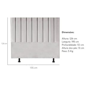 Cabeceira Estofada Cama Box King 195 cm Mavie Suede - Cinza Claro