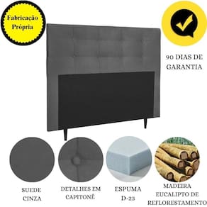 Fabricada com materiais de alta qualidade, como madeira eucalipto e revestimento em suede, esta cabeceira é durável e resistente, garantindo não apenas estilo, mas também funcionalidade para o seu ambiente.