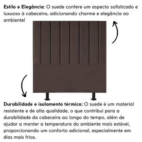 Fabricada com materiais de alta qualidade, como madeira eucalipto e revestimento em suede, esta cabeceira é durável e resistente, garantindo não apenas estilo, mas também funcionalidade para o seu ambiente.