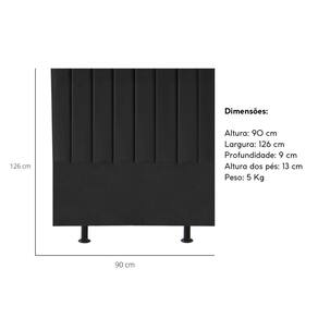 Cabeceira Estofada Cama Box Solteiro 90 cm Marina Linho - Preto