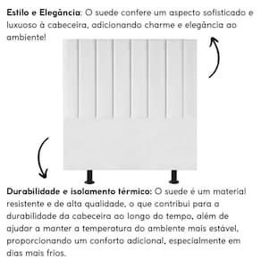 Fabricada com materiais de alta qualidade, como madeira eucalipto e revestimento em suede, esta cabeceira é durável e resistente, garantindo não apenas estilo, mas também funcionalidade para o seu ambiente.