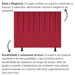 Fabricada com materiais de alta qualidade, como madeira eucalipto e revestimento em suede, esta cabeceira é durável e resistente, garantindo não apenas estilo, mas também funcionalidade para o seu ambiente.