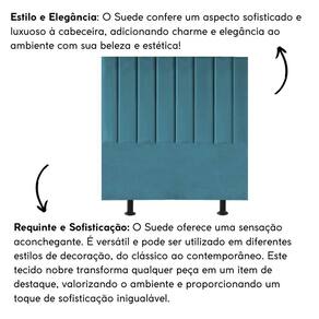 Fabricada com materiais de alta qualidade, como madeira eucalipto e revestimento em suede, esta cabeceira é durável e resistente, garantindo não apenas estilo, mas também funcionalidade para o seu ambiente.