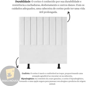 Fabricada com materiais de alta qualidade, como madeira eucalipto e revestimento em corino, esta cabeceira é durável e resistente, garantindo não apenas estilo, mas também funcionalidade para o seu ambiente.