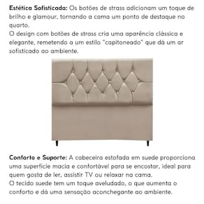 Com botões Strass, dispostos em uma padronagem elegante, trazem um brilho sutil e adicionam um toque de glamour à cabeceira. Cada detalhe foi cuidadosamente trabalhado, fazendo dela o ponto focal do seu quarto.