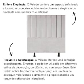 Fabricada com materiais de alta qualidade, como madeira eucalipto e revestimento em veludo, esta cabeceira é durável e resistente, garantindo não apenas estilo, mas também funcionalidade para o seu ambiente.