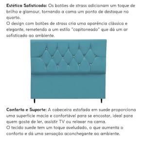 Fabricada com materiais de alta qualidade, como madeira eucalipto e revestimento em Suede, esta cabeceira é durável e resistente, garantindo não apenas estilo, mas também funcionalidade para o seu ambiente.