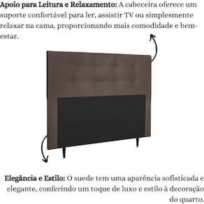 Durabilidade Superior: Com sua estrutura de madeira de eucalipto e revestimento em suede, a Cabeceira Helena foi concebida para resistir ao teste do tempo e proporcionar valor a longo prazo.