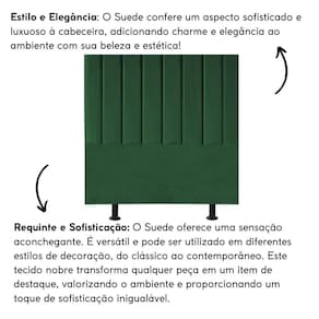 Fabricada com materiais de alta qualidade, como madeira eucalipto e revestimento em suede, esta cabeceira é durável e resistente, garantindo não apenas estilo, mas também funcionalidade para o seu ambiente.