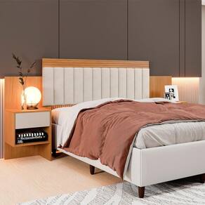 O design completo inclui duas mesas de cabeceira acopladas, cada uma com 2 gavetas espaçosas e corrediças telescópicas, proporcionando ótimo aproveitamento de espaço para organizar objetos pessoais com praticidade.