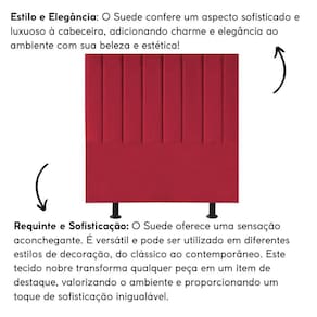 Fabricada com materiais de alta qualidade, como madeira eucalipto e revestimento em Suede, esta cabeceira é durável e resistente, garantindo não apenas estilo, mas também funcionalidade para o seu ambiente.