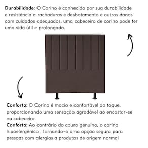 Fabricada com materiais de alta qualidade, como madeira eucalipto e revestimento em Corino, esta cabeceira é durável e resistente, garantindo não apenas estilo, mas também funcionalidade para o seu ambiente.