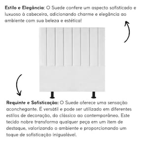 Fabricada com materiais de alta qualidade, como madeira eucalipto e revestimento em Suede, esta cabeceira é durável e resistente, garantindo não apenas estilo, mas também funcionalidade para o seu ambiente.