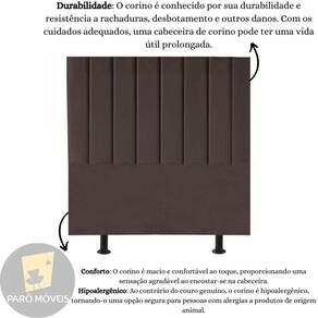 Fabricada com materiais de alta qualidade, como madeira eucalipto e revestimento em corino, esta cabeceira é durável e resistente, garantindo não apenas estilo, mas também funcionalidade para o seu ambiente.