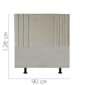 - Largura: 90 cm; - Altura: 126 cm; - Profundidade: 11 cm; - Produto estofado; - Produzido em Madeira de Pinus e Eucalipto; - Pés em pvc.
