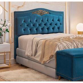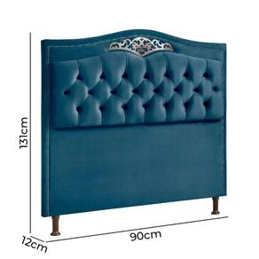 Cabeceira Estofada Holanda 0,90 Solteiro Veludo Star Confort Azul A cabeceira Holanda possui um lindo design retro, essa linha e para quem busca renovar a decoracao do quarto, sem deixar de lado o conforto e a praticidade. Resistente e confeccionada com materiais de alta qualidade, suas medidas sao indicadas para cama box de 0,88 cm. Combine-a com travesseiros e almofadas de sua preferencia e torne sua decoracao ainda mais charmosa e aconchegante Caracteristicas: Estrutura: Madeira de eucalipto Material e Densidade da Espuma: Poliuretano sem carga Revestimento: Veludo Pe: 2 unidades de PVC com 13 cm Possui Frame: Sim Tipo de Frame: Metal Sistema de Montagem: Acompanha manual de montagem para auxilio Complexidade da Montagem: Baixa Volumes: 1 Volume Recomendacao de Limpeza: Utilize pano levemente umido e detergente neutro caso precisar.