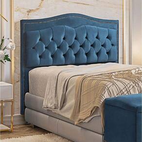 Cabeceira Estofada Holanda 1,40 Casal 2.0 Veludo Speciale Home Azul