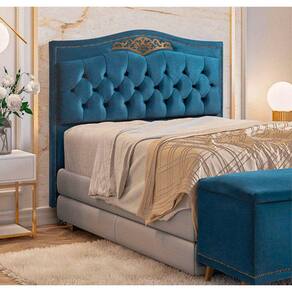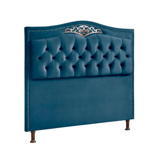 Cabeceira Estofada Holanda 1,40 Casal Veludo Speciale Home - Azul Marinho