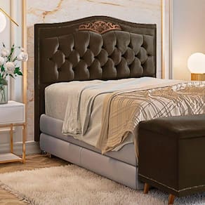 Cabeceira Estofada Holanda 1,60 Queen Veludo Speciale Home Marrom Chocolate A cabeceira Holanda possui um lindo design retro, essa linha e para quem busca renovar a decoracao do quarto, sem deixar de lado o conforto e a praticidade. Resistente e confeccionada com materiais de alta qualidade, suas medidas sao indicadas para cama box de 1,58 cm. Combine-a com travesseiros e almofadas de sua preferencia e torne sua decoracao ainda mais charmosa e aconchegante Caracteristicas Do Produto: Estrutura: Madeira de eucalipto Material e Densidade da Espuma: Poliuretano sem carga Revestimento: Veludo Pe: 2 unidades de PVC com 13 cm Possui Frame: Sim Tipo de Frame: Metal