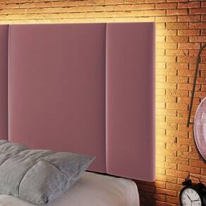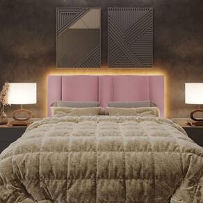 Cabeceira Estofada Iluminação Led Cama Queen Size 160 Cm veludo Rosê - Rosa