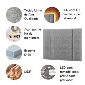 Iluminação LED Integrada: A cabeceira vem equipada com uma mangueira de LED quente (Amarelo) BIVOLT já com tomada, com uma luz suave e aconchegante, ideal para criar um ambiente relaxante ou para leitura noturna.