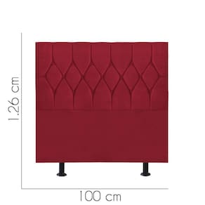 - Largura: 100 cm; - Altura: 126 cm; - Profundidade: 11 cm; - Produto estofado; - Produzido em Madeira de Pinus e Eucalipto; - Pés em pvc.