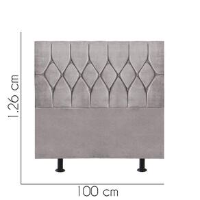 - Largura: 100 cm; - Altura: 126 cm; - Profundidade: 11 cm; - Produto estofado; - Produzido em Madeira de Pinus e Eucalipto; - Pés em pvc.