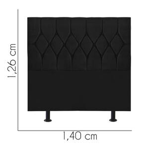 - Largura: 140 cm; - Altura: 126 cm; - Profundidade: 11 cm; - Produto estofado; - Produzido em Madeira de Pinus e Eucalipto; - Pés em pvc.