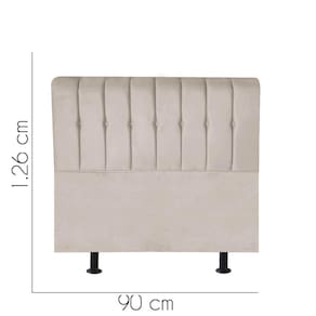 - Largura: 90 cm; - Altura: 126 cm; - Profundidade: 11 cm; - Produto estofado; - Produzido em Madeira de Pinus e Eucalipto; - Pés em pvc.
