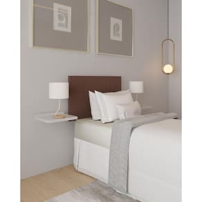 Cabeceira Estofada Marrom Maceió + Bancada - Solteiro - Box Cabeceira Maceió + Bancada Cabeceira p/cama Solteiro 0.90cm Pequenos detalhes transformam a decoração de alguns ambientes, a Decor Móveis trouxe a cabeceira para esta transformação. Pensando em aliar conforto e suavidade, desenvolvemos a Cabeceira Painel Estofada + Bancada de cabeceira, a opção ideal para transformar seu ambiente com um pequeno toque de sofisticação. Uma ótima e funcional opção para repaginar seu quarto. Resistente e com alta durabilidade Necessita montagem e deve ser fixada na parede Cabeceira estofada com revestimento em MDF e tecido almofadado; Cabeceira suspensa Bancada feita em MDF TX Branco Esse anúncio acompanha Cabeceira Bela para Cama Solteiro 0.90cm 2 Bancada de Cabeceira Cabeceira Maceió Solteiro 0.90cm Medidas: 56 cm Altura 0.90 cm largura 5 cm espessura Medidas Bancada de cabeceira: 35 cm largura 30 cm profundidade 2 cm espessura MDF TX BRANCO Observações Importantes: - Produto não deve ficar exposto diretamente ao sol, calor e umidades excessivas. - Recomendações de Limpeza: Utilize somente pano seco ou levemente umedecido. - O produto pode sofrer alterações de tonalidade conforme o seu monitor. - Imagens meramente ilustrativas, produto não acompanha objetos de decoração e eletrônicos. - Ao receber, verifique a embalagem. Se detectar irregularidades, recuse o recebimento e nos contate. - Nós não nos responsabilizamos pela montagem e por problemas causados pela montagem realizada por você ou montador contratado. Enfatizamos a recomendação aos nossos clientes de contratar um montador profissional. - Eventualmente, se faltar qualquer peça ou acessório no produto, nos contate e enviaremos a peça/acessório sem custo adicional. Marca: Decor Moveis