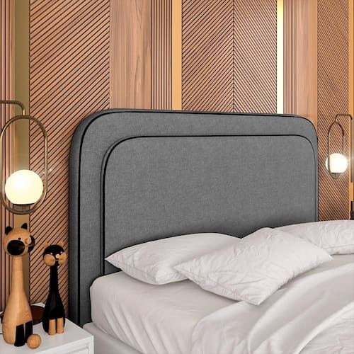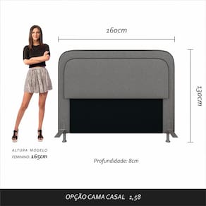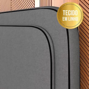 Materiais de Fabricação: - Estrutura: Madeira Eucalipto - Revestimento: Linho - Tonalidade do tecido : Linho Cinza - Pés: Polietileno - Medida para cama:1,58 cm - Acompanha kit frame - Estruturado com material de altíssima qualidade, evitando fungos e mofo.