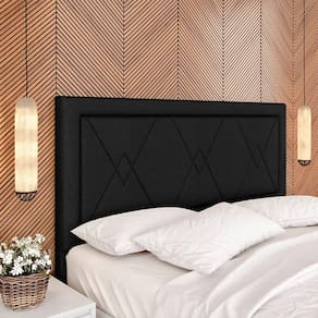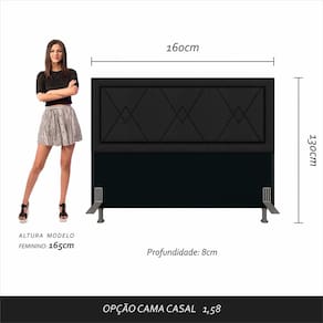 Materiais de Fabricação: - Estrutura: Madeira Eucalipto - Revestimento: Suede - Tonalidade do tecido : Suede Preto - Pés: Polietileno - Medida para cama:1,58 cm - Acompanha kit frame - Estruturado com material de altíssima qualidade, evitando fungos e mofo.