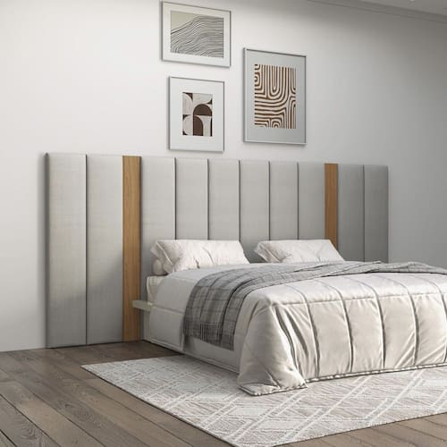 Características: Estrutura 100% MDF Acabamento em Pintura UV Cabeceira Estofada Detalhes em MDF Ideal para Colchão de Casal (138 cm de largura) e Queen (158 cm de largura) NÃO ACOMPANHA CAMA NÃO ACOMPANHA COLCHÃO