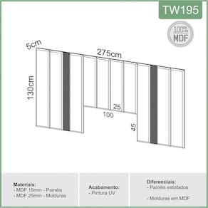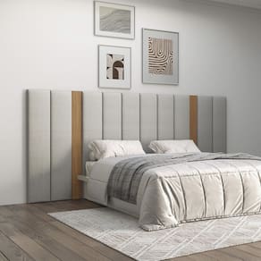Cabeceira Estofada Queen Reta TW195 Freijó Linho Cinza Claro J18 Dalla Costa