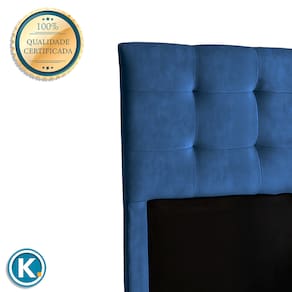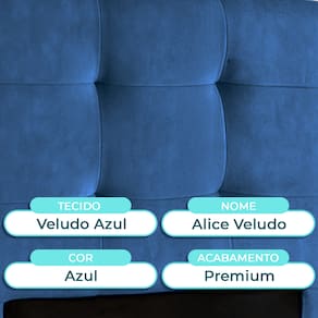 Cabeceira Estofada Solteiro Alice Nature Veludo Azul 88x136