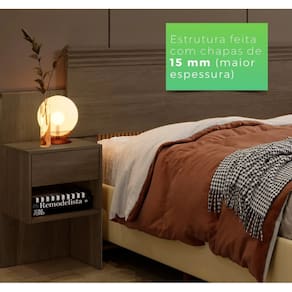 A Cabeceira Master é produzido todo em chapa de 15 mm, contem 2 mesas de cabeceira e 2 gavetas com corrediças telescópicas com bastante espaço, além de ter montagem dupla nas medidas para colchão de 140 cm e 160 cm também não necessita parafusar na parede dando flexibilidade no seu ambiente.