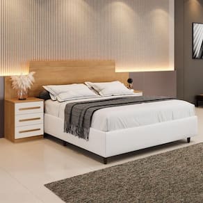 Cabeceira Extensiva Para Box Ferrara 2 Mesas De Cabeceira Cinamomo Off A Cabeceira Ferrara e produzida todo em chapa de 15 mm, contem 2 mesas de cabeceira e 6 gavetas com corredicas telescopicas com bastante espaco, alem de ter montagem dupla nas medidas para colchao de 138 cm e 158 cm, nao necessita parafusar na parede dando flexibilidade no seu ambiente. Sua fabricacao utiliza a linha mdp perffect, que une a sustentabilidade a inovacao tecnologica, proporcionando durabilidade e facil limpeza; inspirando sofisticacao ao mobiliario. Sua pintura UV conta com boa resistencia, e facil de limpar e e ecologicamente correto, pois utiliza madeira de reflorestamento, evitando o desmatamento. Caracteristicas: Material principal: MDP Espessura da chapa: 15 mm Escala de brilho: semibrilho Acabamento: Pintura UV Sistema de montagem: parafuso, cavilha e cantoneiras metalicas Quantidade de Gavetas: 6