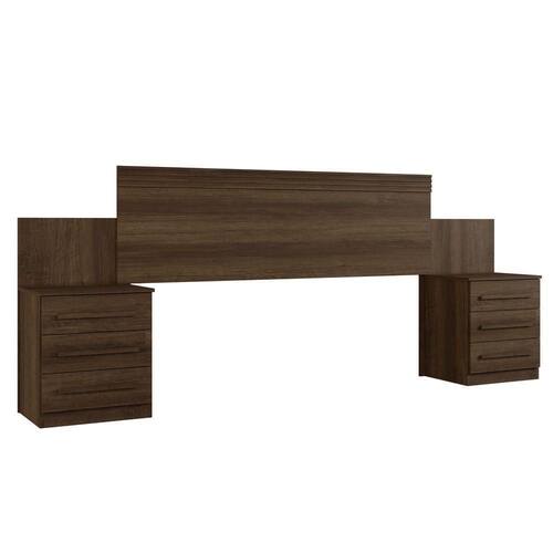 Cabeceira Extensiva Para Box Ferrara 2 Mesas De Cabeceira Imbuia A Cabeceira Ferrara e produzida todo em chapa de 15 mm, contem 2 mesas de cabeceira e 6 gavetas com corredicas telescopicas com bastante espaco, alem de ter montagem dupla nas medidas para colchao de 138 cm e 158 cm, nao necessita parafusar na parede dando flexibilidade no seu ambiente. Sua fabricacao utiliza a linha mdp perffect, que une a sustentabilidade a inovacao tecnologica, proporcionando durabilidade e facil limpeza; inspirando sofisticacao ao mobiliario. Sua pintura UV conta com boa resistencia, e facil de limpar e e ecologicamente correto, pois utiliza madeira de reflorestamento, evitando o desmatamento. Caracteristicas: Material principal: MDP Espessura da chapa: 15 mm Escala de brilho: semibrilho Acabamento: Pintura UV Sistema de montagem: parafuso, cavilha e cantoneiras metalicas Quantidade de Gavetas: 6