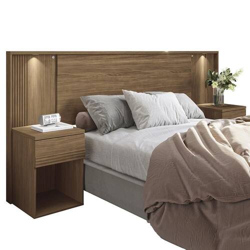 Cabeceira Extensível Bourbon Casal Queen Ripada Jatobá Com Led - Santos Andirá Jatobá Cabeceira Extensível Bourbon Casal Queen Ripada com LED - Santos Andirá A Cabeceira Bourbon é um móvel incrível para compor seu quarto. Ela é moderna e versátil, pode ser usada com colchão de 138 ou 158 cm. Conta com 2 mesas de cabeceira para apoio dos seus objetos e decorações, detalhes ripados no painel e gavetas que trazem modernidade e sofisticação. Possui também luz de LED com interruptores individuais, um de cada lado, para melhor comodidade dos usuários. Inove seu ambiente com a Cabeceira Bourbon. ESPECIFICAÇÕES: - Estrutura MDP - Pintura UV - Mesa de apoio lateral - 2 Gavetas - Corrediças telescópicas - Detalhe de ripado nas gavetas e painel - Luz de LED com interruptor individual - Para colchões box casal de 138 e 158 cm - Não acompanha colchão