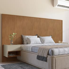 Cabeceira Florença Para Cama De Casal E Queen Com 2 Mesas De Apoio Cedro/off White - Casa D Cedro/off White Cabeceira Florença para Cama de Casal e Queen com 2 Mesas de Apoio - Casa D Transforme seu quarto em um espaço moderno, prático e sofisticado. A Cabeceira Florença é ideal para camas de Casal e Queen e se destaca pelo painel frisado que traz elegância e um toque contemporâneo ao ambiente. Fabricada em MDF e MDP com pintura UV, une resistência, durabilidade e um excelente acabamento. Acompanha duas mesas de cabeceira suspensas com 1 gaveta cada, corrediças telescópicas e nicho interno, oferecendo funcionalidade e organização no dia a dia. O conjunto perfeito para deixar o seu dormitório ainda mais bonito e bem planejado. Cabeceira Florença para Cama de Casal e Queen - Casa D - Estrutura em MDF e MDP - Pintura UV - Painel frisado - Cabeceira para cama casal e queen