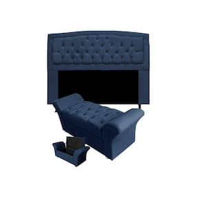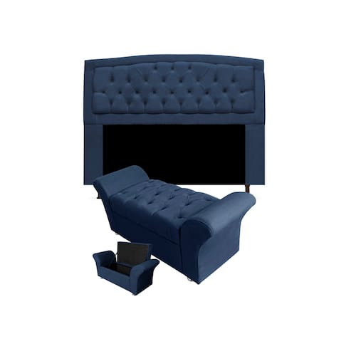 Cabeceira Geovana e Calçadeira Veneza Estofada King 195cm Suede Azul Marinho - LM DECOR