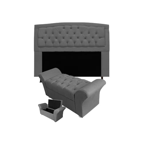 Cabeceira Geovana e Calçadeira Veneza Estofada King 195cm Suede Cinza - LM DECOR