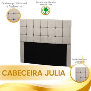 Caracteristicas: Cabeceira Marca: Star Confort Modelo: Julia Material da Estrutura: Madeira Macica Tratada Espuma: D12 Revestimento: Veludo Acabamento: Botoes Possui Pes: Nao Sapata: 2 unidades Material Sapata: Plastico com altura de 1cm Tipo de Fixacao da Cabeceira: Fixacao no Box por parafuso Recomendacao de Limpeza: Utilize pano levemente umido