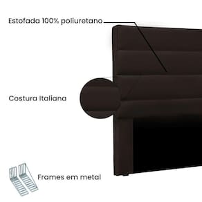 Visual moderno e sofisticado com o tamanho perfeito para você, produzida com materiais de primeira linha, como o nome mesmo já diz Lá Italiana é toda com costuras italiana com linhas horizontais, uma obra de arte no seu quarto que vai trazer o conforto que você merece. Informações Técnicas: Tecido: Corano Estrutura: Madeira Industrializada Densidade da Espuma: D-23 Costura: Bordada Montagem: Acompanha manual de montagem, kit frame e parafusos para cama box Medidas: Altura total: 1,25 m Largura total: 1,95 m Profundidade total: 0,08 m Peso: 12,8 kg Informações Importantes: Confira as dimensões do produto no momento da compra e certifique-se de que passará normalmente por escadas, elevadores, portas e corredores. Os produtos vão embalados e enviados com total segurança. As cores dos produtos podem sofrer alterações dependendo do seu monitor. Por se tratar de estofado as medidas podem ter uma pequena variação em até 3 cm. Não nos responsabilizamos no ato da entrega por montagens, desmontagens, instalações de produtos. Não nos responsabilizamos no ato da entrega por subir escadas, elevadores, nem utilização de guinchos ou equipamentos similares para acesso a pisos superiores em apartamentos.