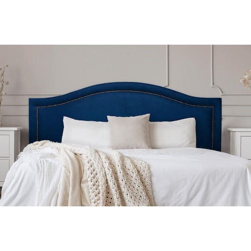 Cabeceira King Curva 193x60cm Suede Azul - Tachas Fumê - Azul Marinho